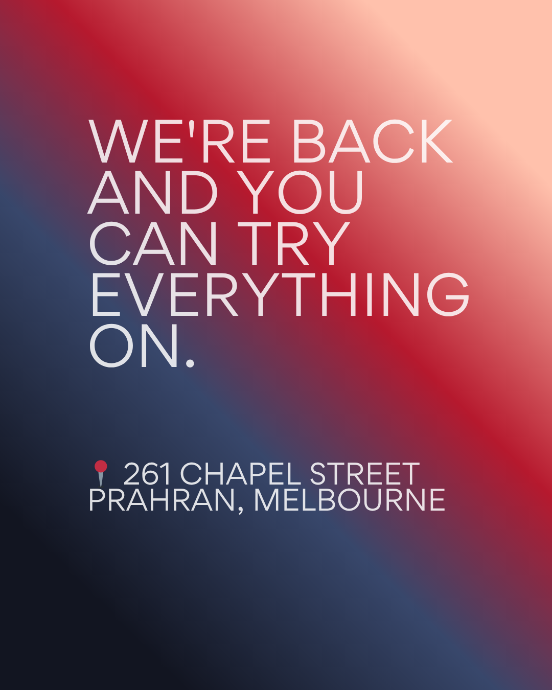 Whether you're a local who's been waiting for the reopening, a visitor to Melbourne looking for something genuinely unique, or someone who's never walked into a store like this before - come in, have a look around, and try something on.